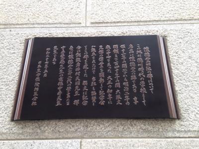 日本生命保険相互会社のビルの外面にわざわざこの碑のために窪みを作って建てられています。