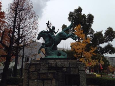大阪城の大手前公園にあったので豊臣とか徳川のなんとかさんの騎馬像かと思いきや乗っているのは知らない顔の人でした。