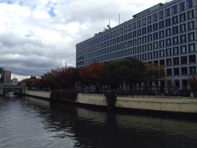 建物の側面はすぐ堂島川に面していて季節柄木々が色づいていたので大江橋から見ても絵になりましたが建物の中からの景色も素晴らしいのでしょうね。- 旅行時期