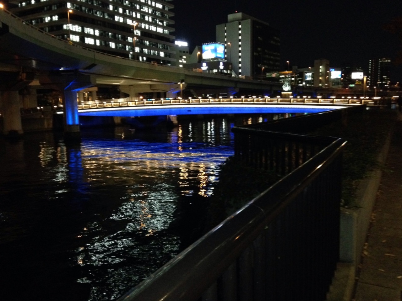 夜は橋の中程のモニュメントと橋の下半分が青くライトアップされてなんか未来的です。- 旅行時期