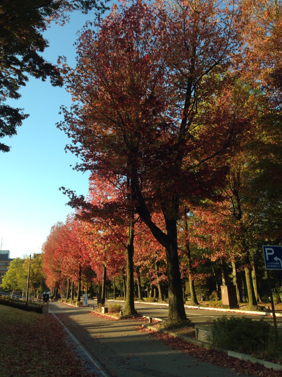 頭上の木々を見ながら歩くのは勿論、形の良い落ち葉を見つけようと足下をキョロキョロしながら歩いたり、ただの道なのですが昼でも夜でも通る度に写真を撮りまくっていました。- 旅行時期