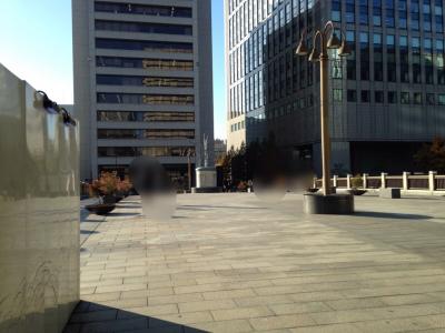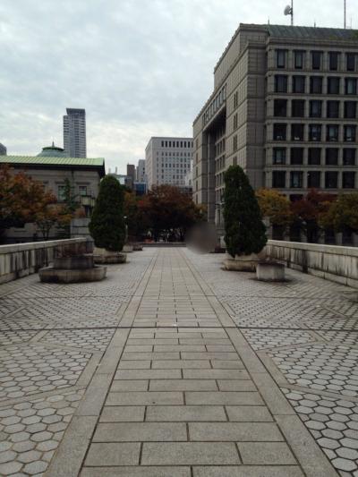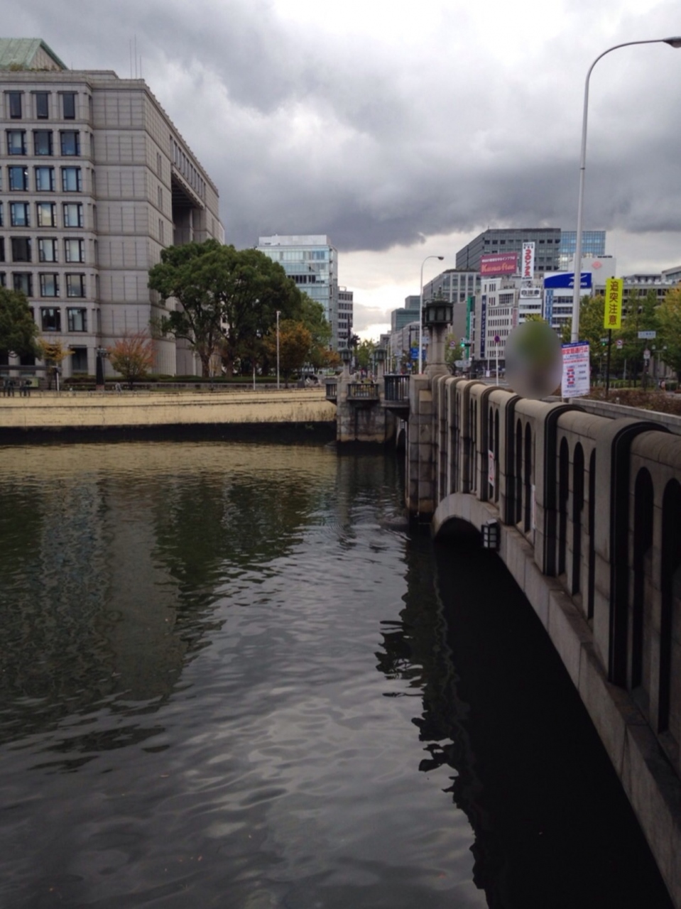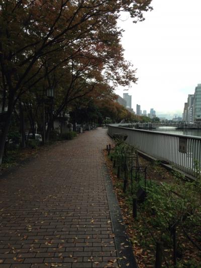 淀屋橋辺りは通勤で歩いる人が多いですがそこから曲がって川沿いの遊歩道に進む人はさほど多くありません。