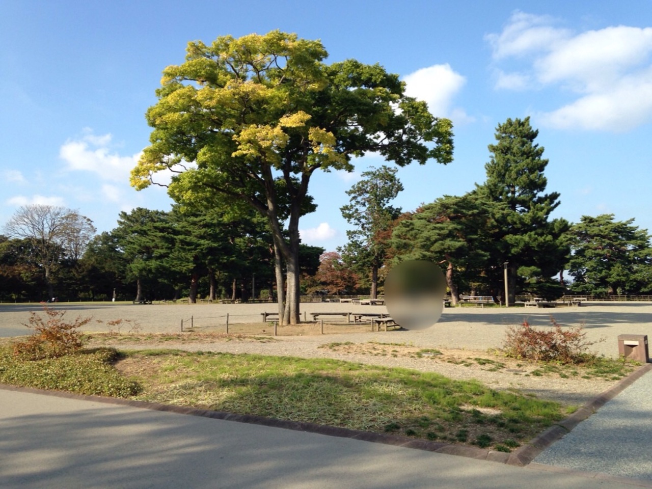 金沢城公園のほぼ中心地で昔は二の丸御殿があったそうですが今は建物の跡は全く見られず、木々やベンチがあるだけです。