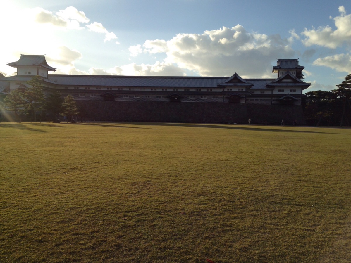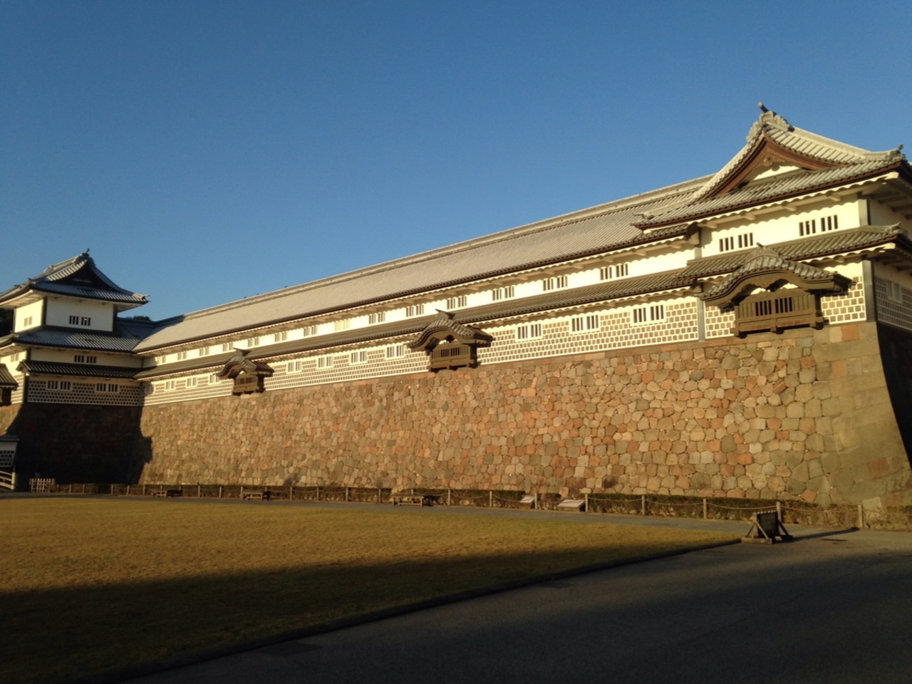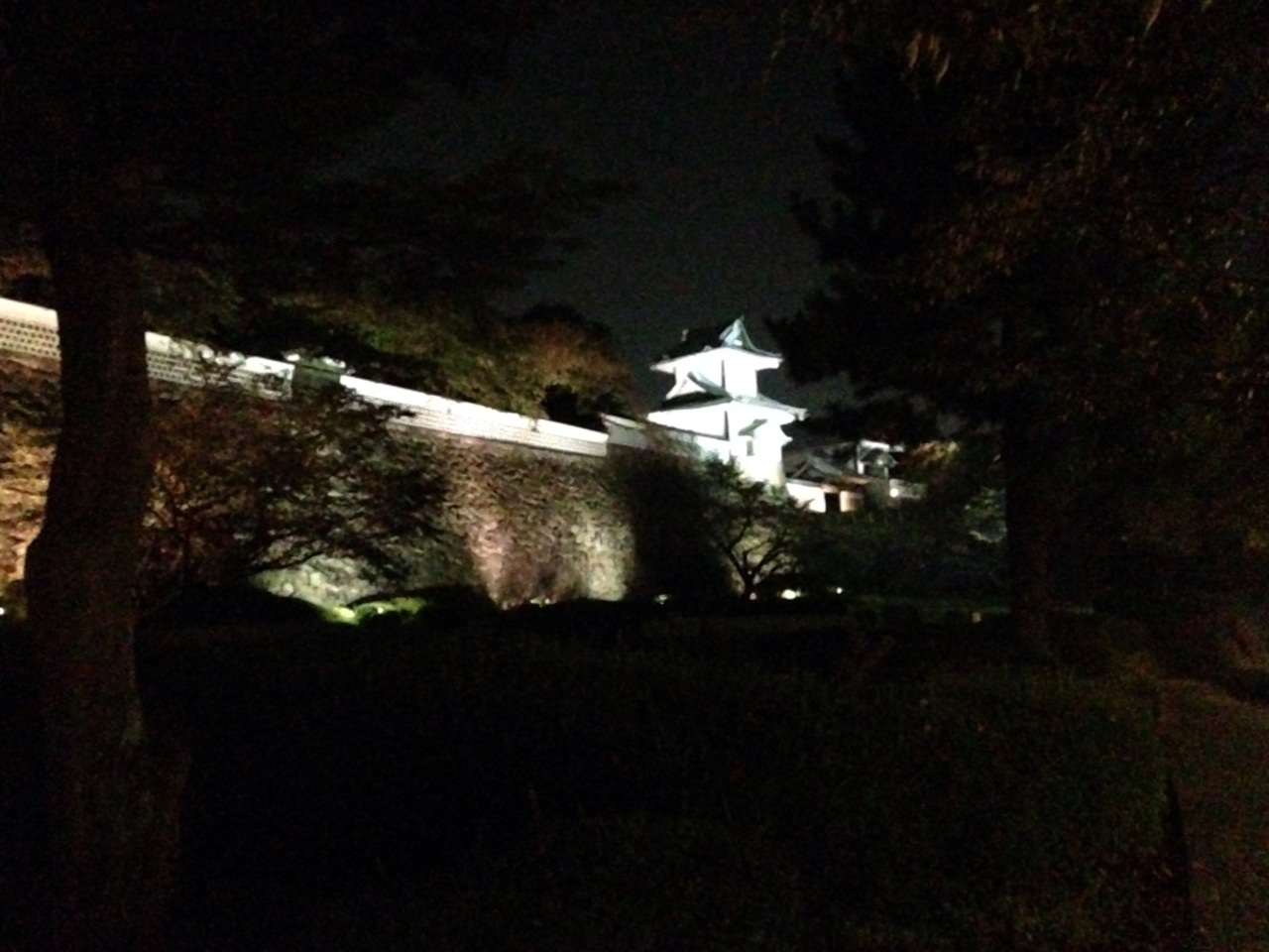 夜散歩しても金沢城公園のライトアップがあっておトクな気分になります