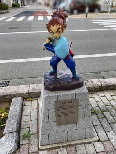 日輪寺の山門の近くに海野六郎のモニュメント がありました。刀を構えているので分かりやすい勇士ですね。今まで十勇士のモニュメントは偶然見つけてきましたがちゃんと観光名所の近くに配置されているようで親切ですね。
