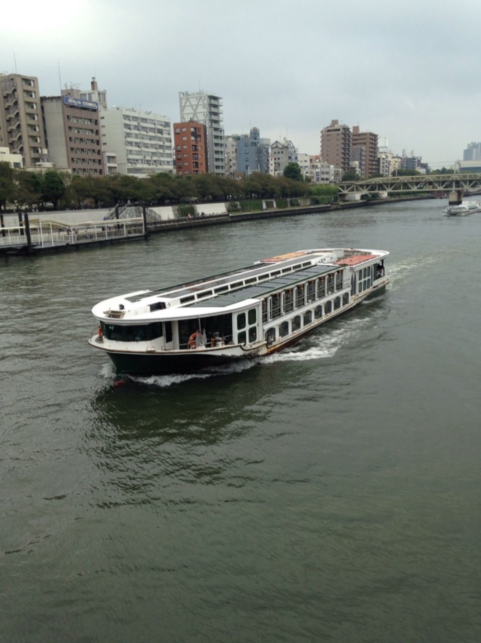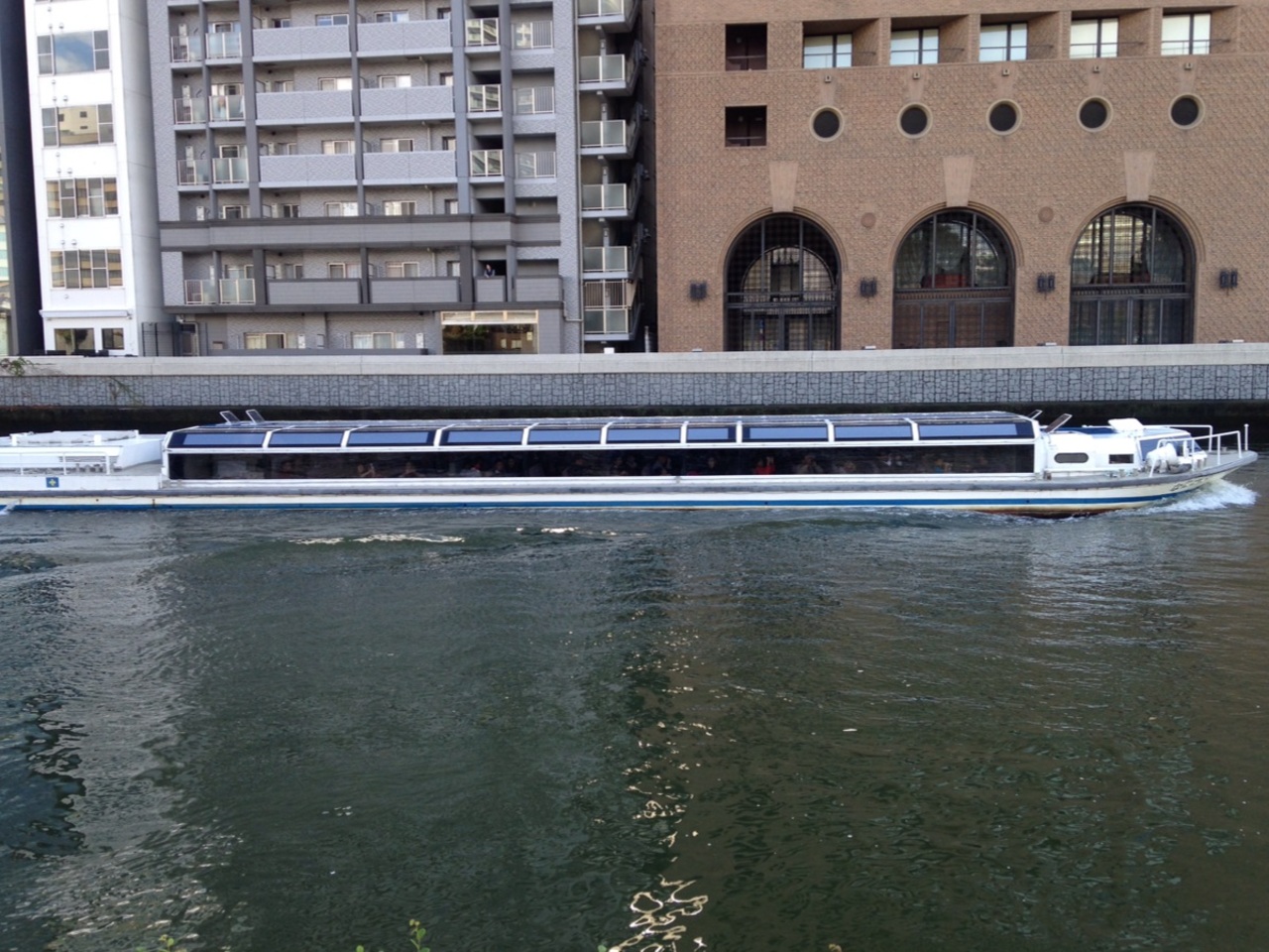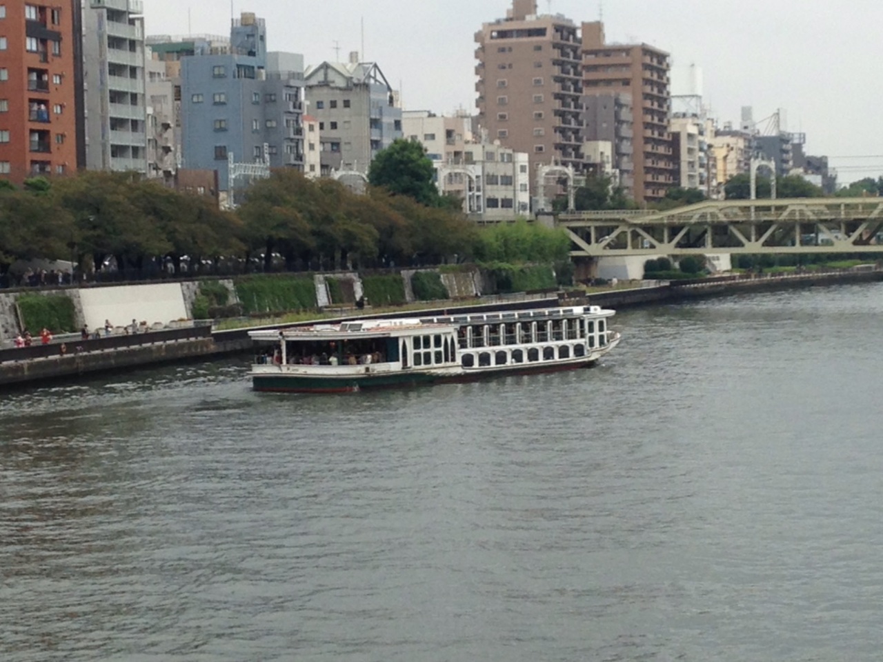 浅草が起点なので我妻橋の上からUターンする船の姿を見ることができます。