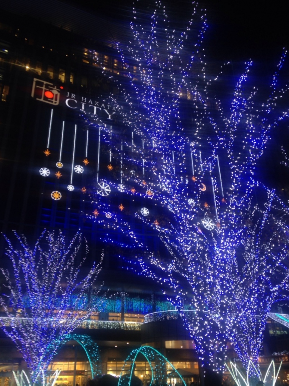 クリスマスシーズンの夜に博多駅に降り立つと何だか幻想的な雰囲気になっていました。