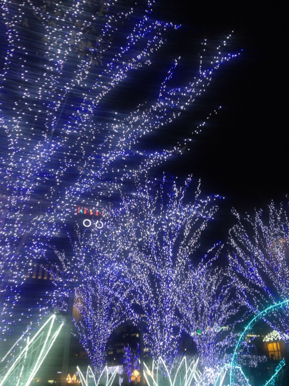 LED電球が70万個だそうで、青い光が綺麗でしたが色は年によって違うとかなんとか。