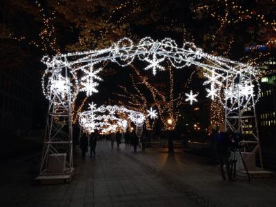 12月に中之島の大阪市役所の脇の川沿いの道がイルミネーションされていました。