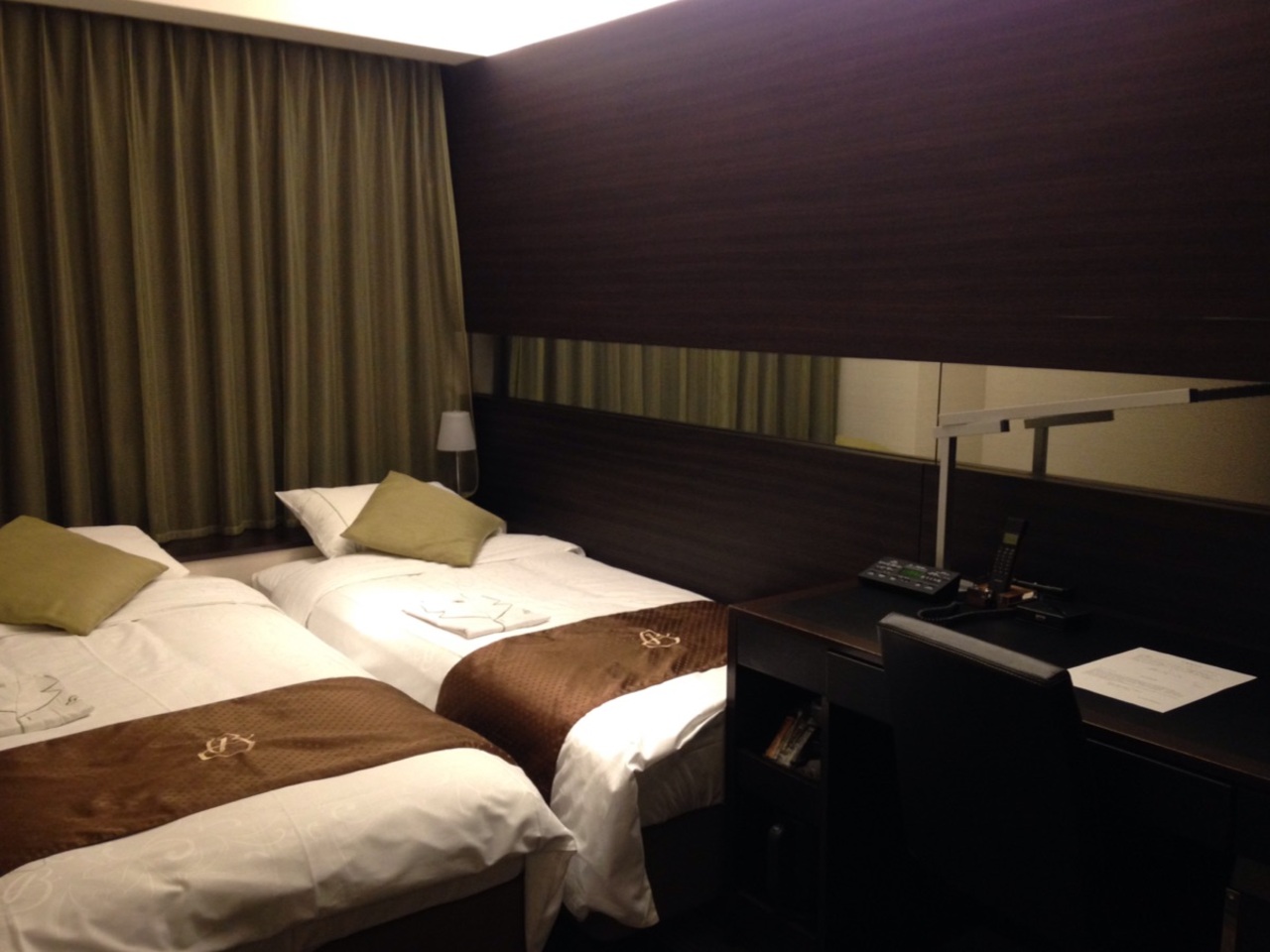 20平米と広めなのはよかったですがベッドの幅がちょっと狭くて細長く見えました。