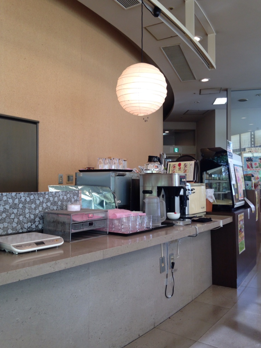 地下1階にありますがそこに降りるエスカレーターの下のスペースにやや殺風景なカフェがあり、おばあちゃん達がゆっくりしていました。