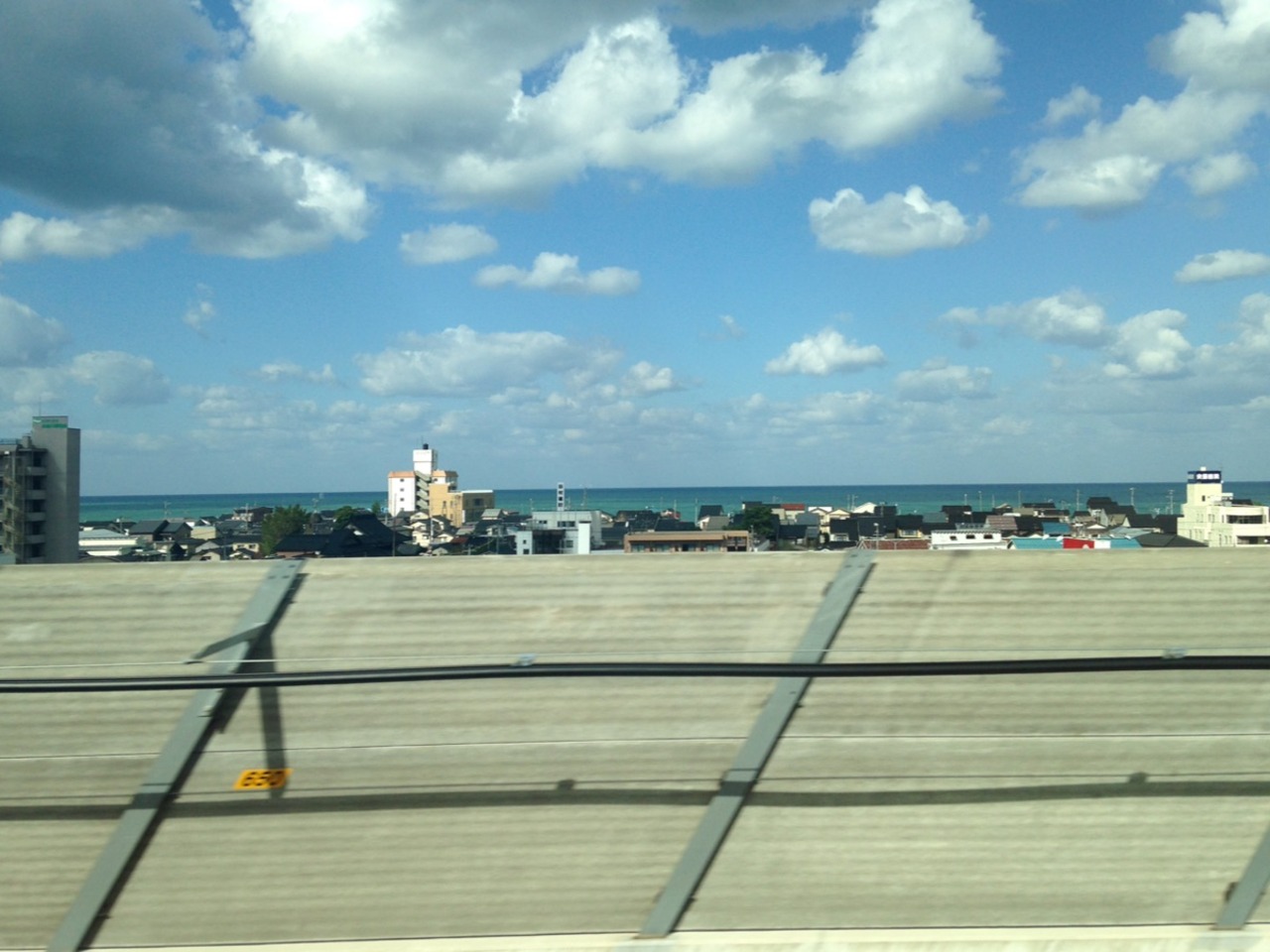 金沢行きでは進行方向に向かって左側の窓側に乗った時は立山連峰が、右側の窓側に乗った時は富山湾等の日本海が見られました。