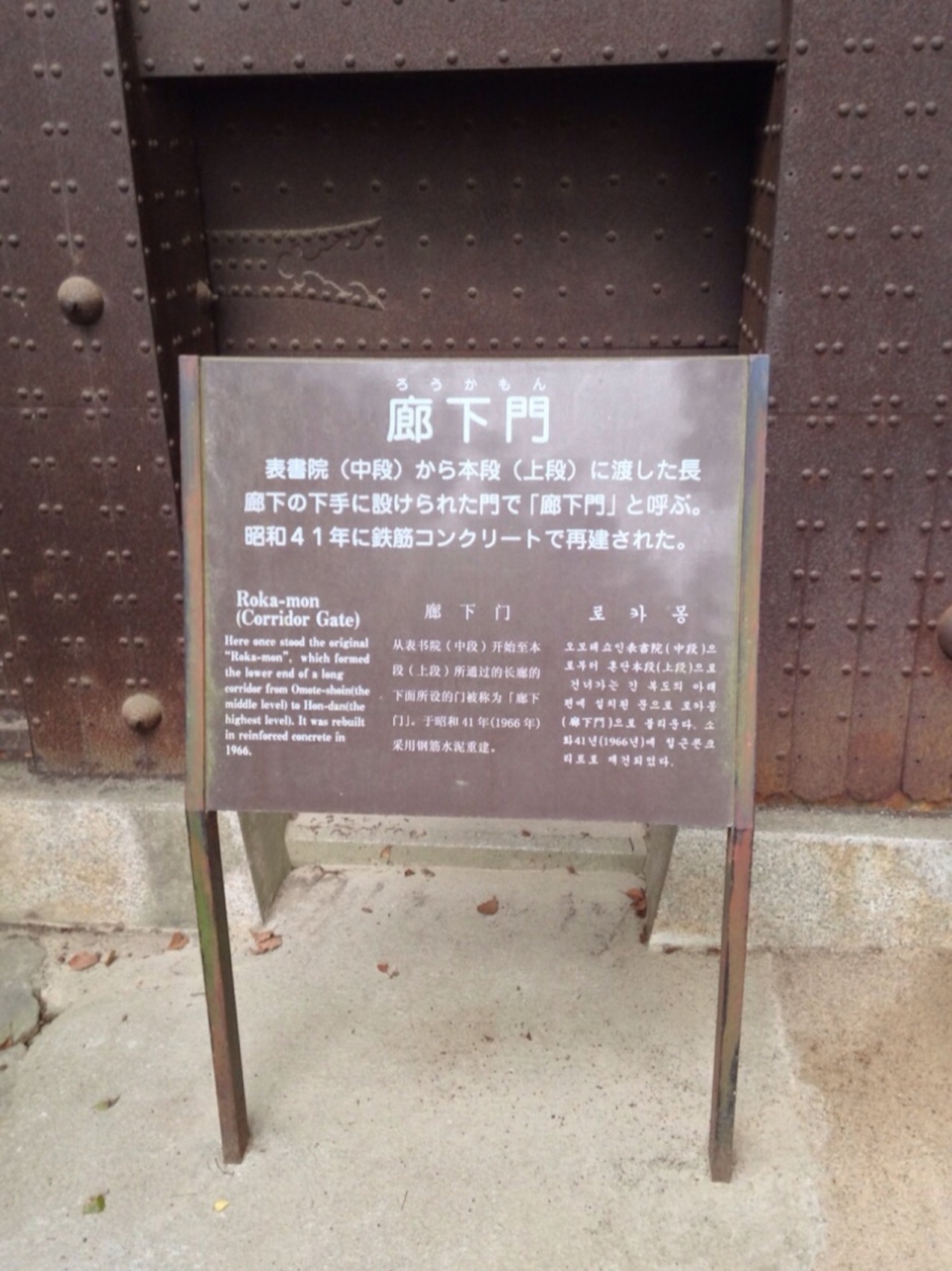 本段には天守閣があるため入口は少なくするためか主に北側の廊下門が使用されていたためこちらの門は閉ざされていたことが多く、不明門(あかずの門)と言うそうです。- 旅行時期