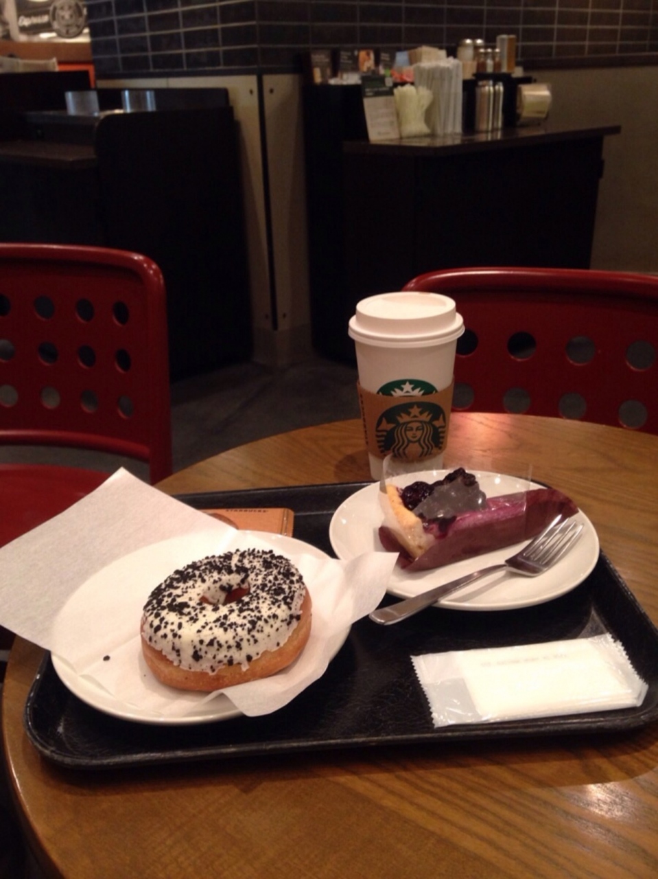 歩き疲れたので店内でアイスラテを飲みながらゆっくりしつつ、ホテルでもコーヒーを飲みたかったのでテイクアウトとしてブルーベリーレアチーズパイと一緒にホットのラテも注文すると会計は先に済ませてコーヒーを作るのは帰る時まで待ってくれました。