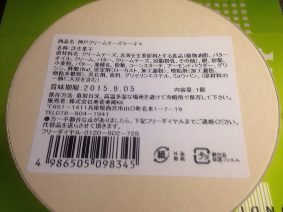 新幹線の中で食べる夕食を物色していたのですが神戸ということでスイーツ系が多く、その中でも目に付いたコンディトライ神戸の神戸クリームチーズケーキを購入しました。