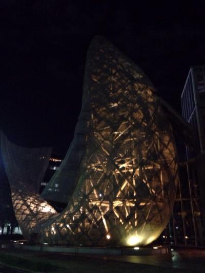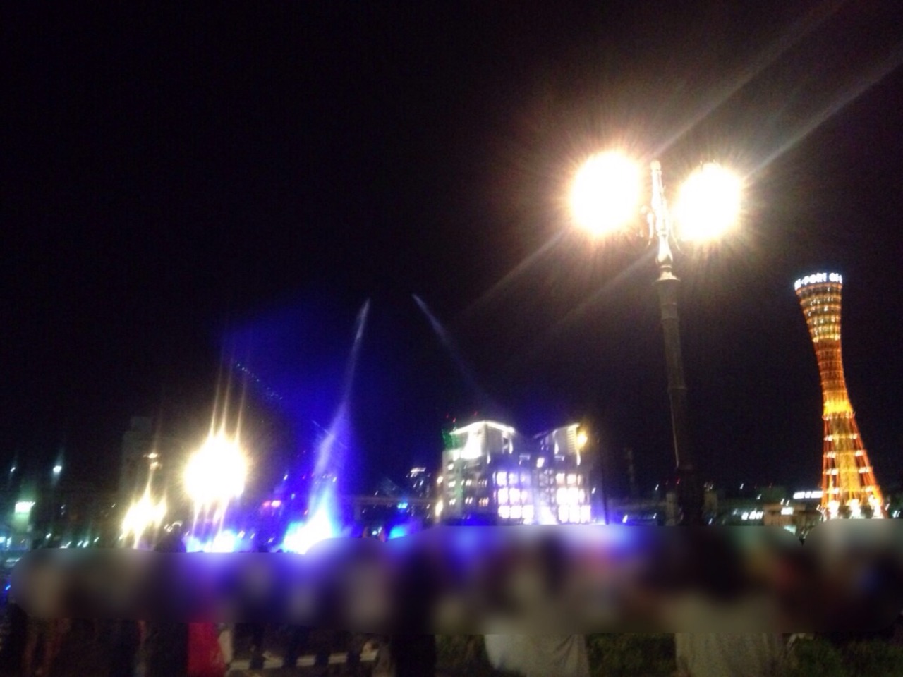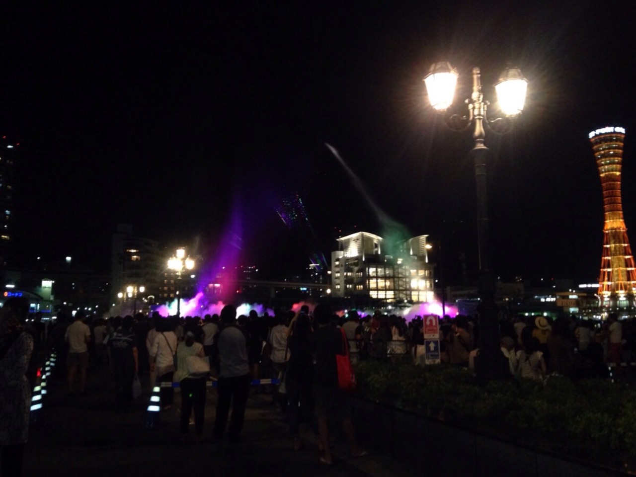 夜にハーバーランド周辺を散歩していると何やら人が集まっています。