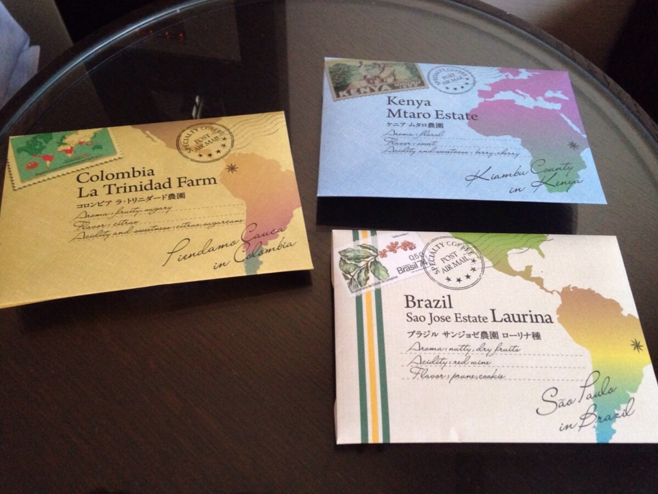ホテルで飲むコーヒーが欲しかったので目に付いたブラジル、コロンビア、ケニアの1杯用ドリップコーヒーを買って帰りました。