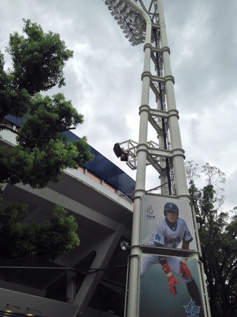 試合日ということで横浜DeNAベイスターズのファンショップも賑やかで、スタジアム周りにワゴンとかで出している飲食店も煙をもくもくさせながらいい匂いをさせていました。