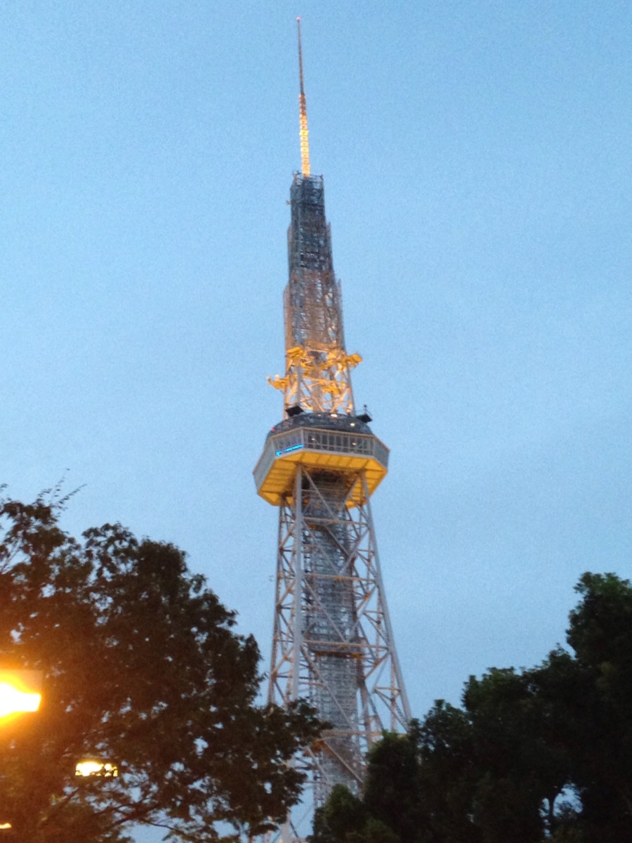 栄に向って歩いていると一応目立つ感じで見えてくるのですが、東京タワーなどと比べてしまうとそこまで高さがあるわけではなく、色も薄いグレー1色でわりと簡素な感じです。