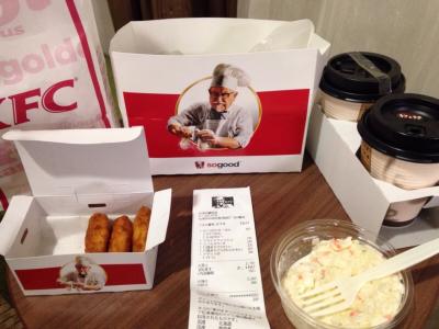 普通のピース、クリスピー、フィッシュ、ナゲット、コールスロー、サイズが小さいのしかないのでコーヒーとカフェラテなど、食べたいものをどんどん注文してテイクアウトしましたが、ちゃんと温かいものと冷たいものを分けて袋に入れてもらえて、お手拭きとかも沢山入れてもらえて助かりました。