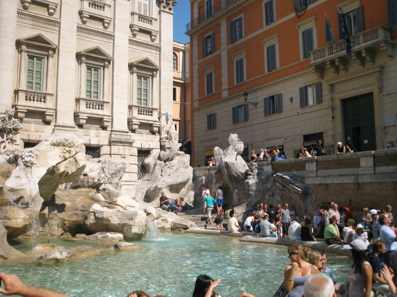 スペイン広場から歩いて30分くらいかかりました。かなり複雑ですので、地図はちょこちょこ見ながら進んだ方が無難かもしれません。いきなり人込みと泉が見えた感じでした。正午近くに着きましたが、人で埋め尽くされています。ただ皆さん写真を撮れば速やかに後退しますので、10分くらいで一番前でコインを投げる写真も撮れました。観光客が多いので写真を撮りあったりもできました。(ひったくりじゃないか迷うところですが)ちなみにコインを実際に入れている人はほとんどいませんでした。(そして本当に投げました)
