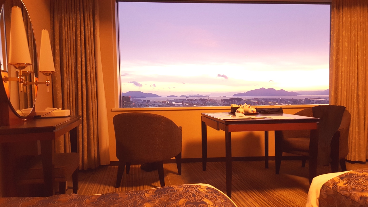 非日常を味わう観点からすれば、立地としてはグランドプリンスの方が勝れていると感じるが、街中のこちらも遠くに瀬戸内海が挑め、宮島(厳島)も意外に大きく見ることができる。北側の部屋からは広島城を見おろすことができるはずだ。