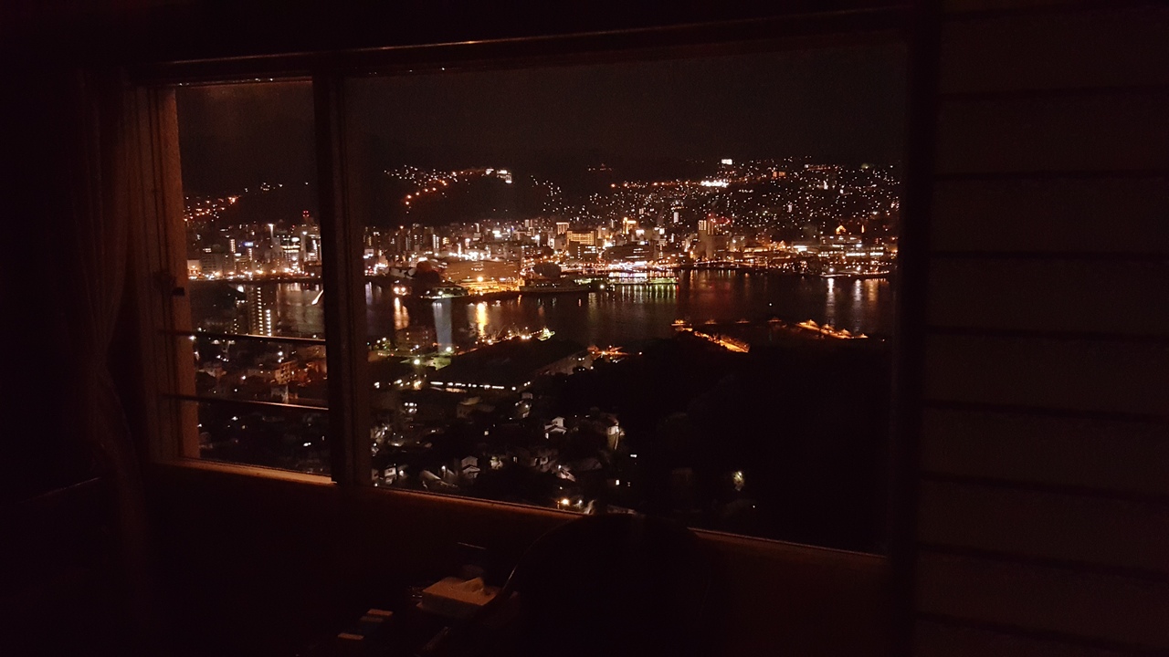 ここの売りはなんといっても稲佐山からの夜景が部屋の大きな窓から堪能できること。