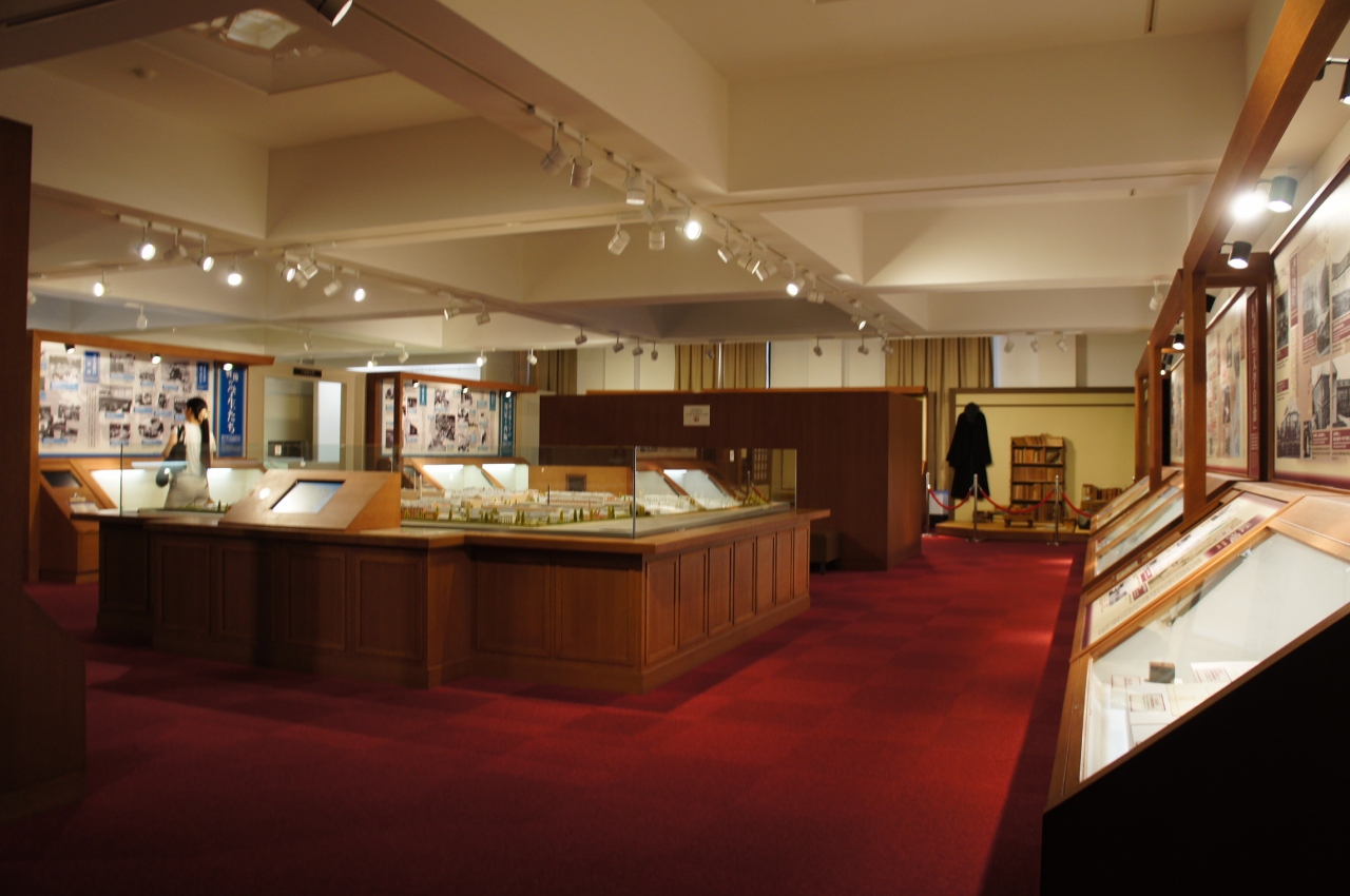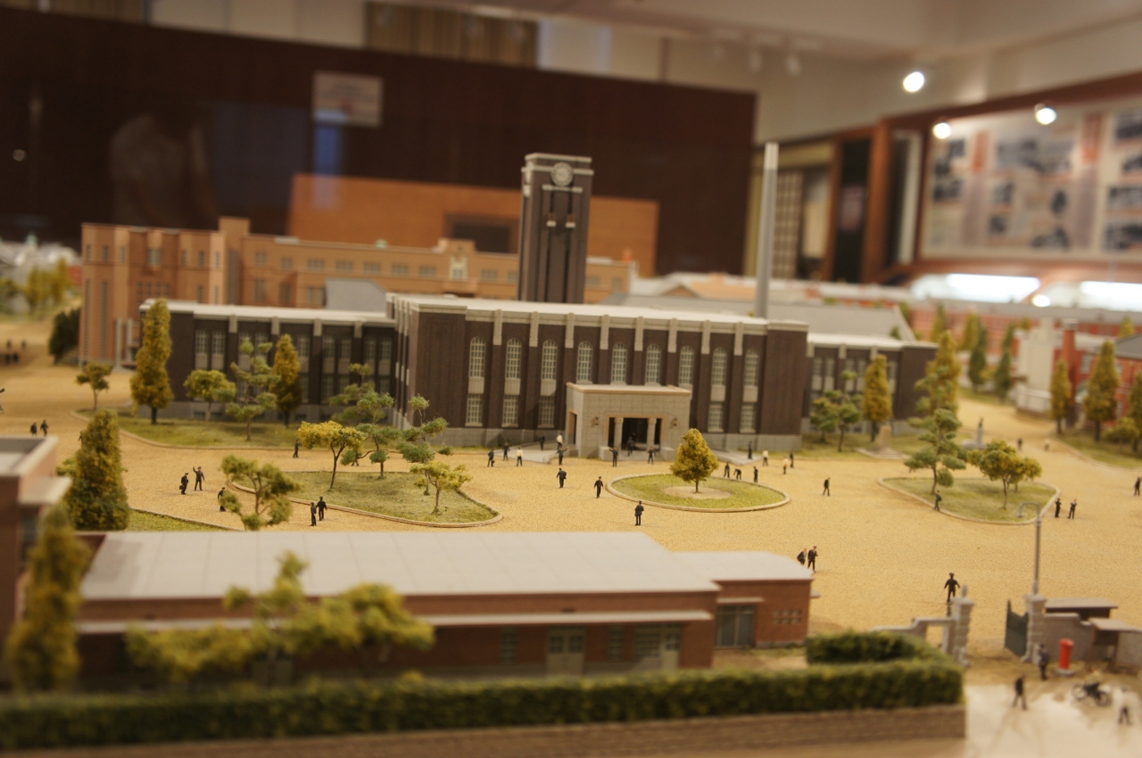 1階に京大の歴史展示室があります。京大の歴史を伝える資料やジオラマが展示してあります。入場無料。9:00~21:30。第1月曜休。