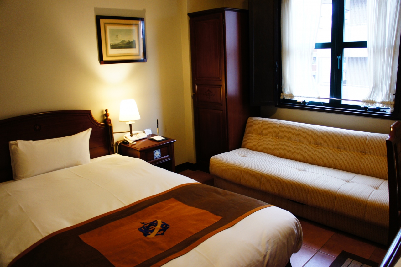 【客室】ヨーロッパのホテルに来たような雰囲気です。デラックスシングルを使いましたが,とても広々していました。97年開業とのことなので,やや古さを感じさせるところもありますが,個人的には,逆に雰囲気が出ていてよかったと思いました。