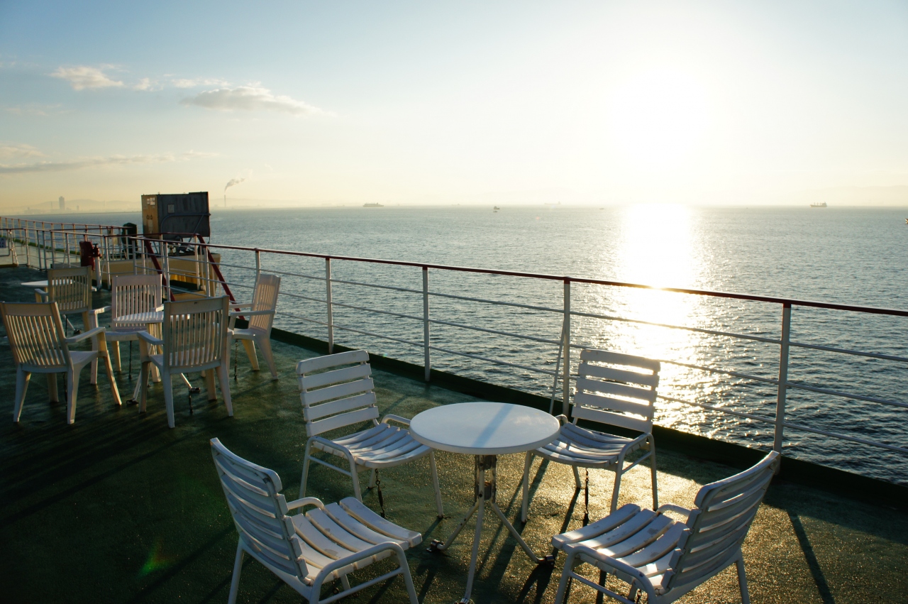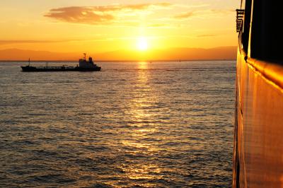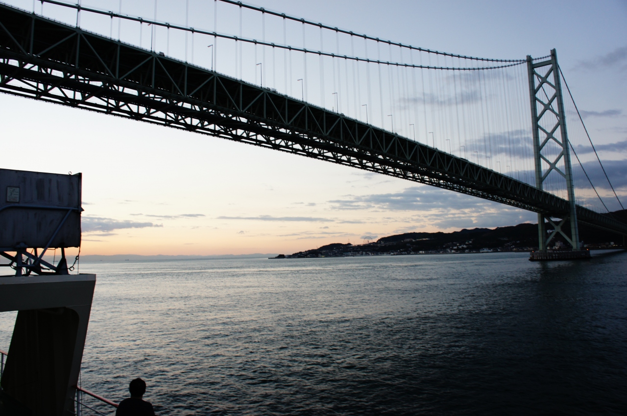 【航路】瀬戸内海の航路なので,揺れはほとんどなく,とても快適でした。午前7時すぎに明石海峡大橋を通過しました。同じころに明石海峡の雄大な日の出を楽しむことができました。- 旅行時期