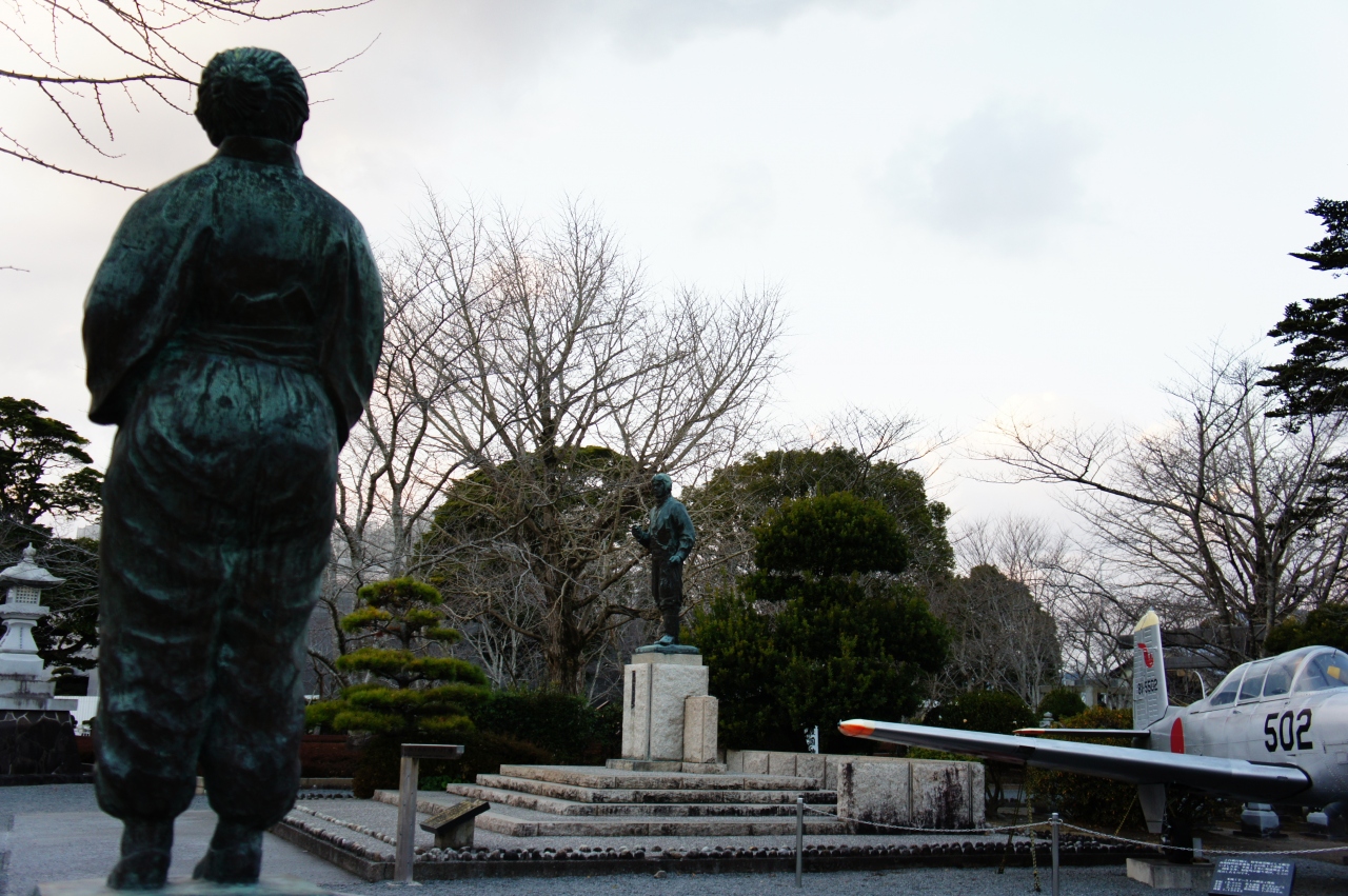 【展示物】屋内には,特攻隊員の遺書や遺品をはじめとして,戦闘機や特攻作戦を知る資料などが展示されています。音声ガイドを借りて,館内は1時間程度,見学しました。元日でしたが,多くの方が見学に来られていました。館内は撮影禁止です。平和会館の隣りには特攻平和観音堂があります。また,屋外には特攻隊員の像や戦闘機が展示してあります。