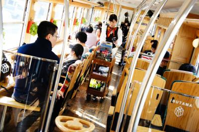 【サービス】名産品などの車内販売ありました。記念撮影も気軽に応じてくれます。乗車記念証も配布されていました。抽選プレゼントの企画もされていました。たしか,景品は指宿温泉の入浴券だったと思います。私は外れましたが(笑)