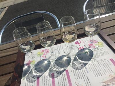 シャトーメルシャンのカフェでワインの試飲セットを注文。何パターンかあり...