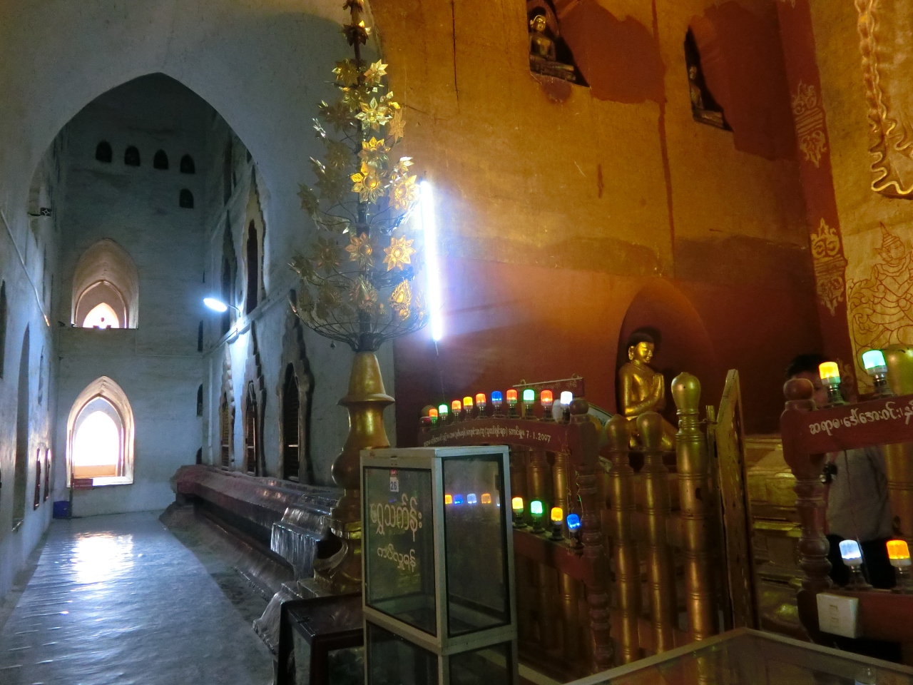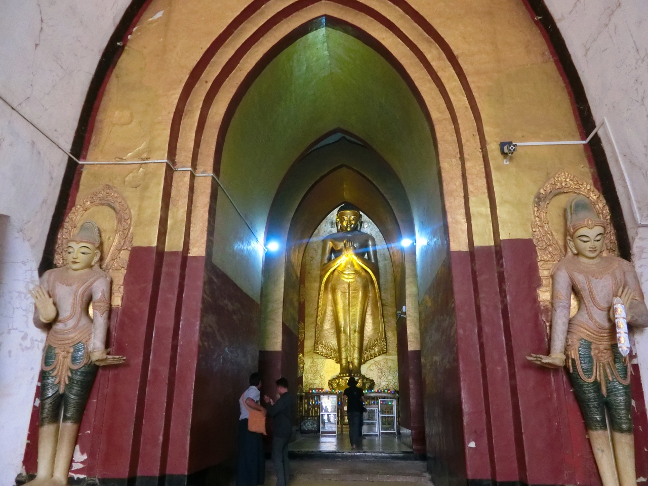 夕陽で有名な、シュエサンドーパヤーのそばにあります。何があるのだろうと思って入ってみたら、狭い中に、18mと大きいけれど地味目の仏様が、建物いっぱいになって寝てらっしゃいました。寺院自体も地味なので、うっかり見逃しそうになりますが、せっかくですから。