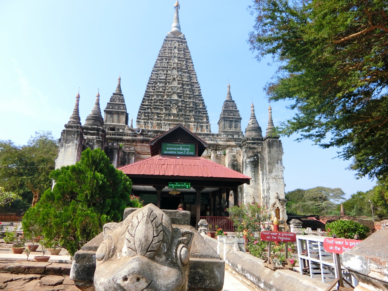 インドはブッダガヤにあるマハーボディー寺院そっくりです。入り口右手、少し離れたところにある売店の女性に、タナカ(ミャンマーの日焼け止め)をやらないかと誘われました。可愛い葉っぱの形に描いてもらった後は、当然、お土産販売です。友人は何も買いませんでしたが(もっとも、彼女はタナカに誘われる前にジュースを買っていました)、私はビルマ語の書かれたTシャツを3ドルで買いました。高かったのかもしれませんが、タナカ代ということで。面白いので、1つぐらい何か買っても良いかなと思われる方は、タナカ体験してみても思い出になるのじゃないでしょうか。