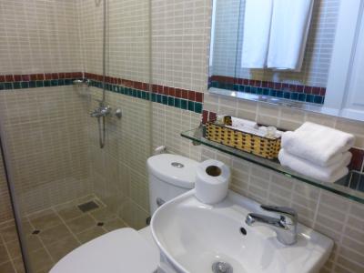 清潔で、お湯もしっかり出て、アメニティもあり、ポットやコーヒーとジャスミンティもあり、で、全く問題ないホテルでした。