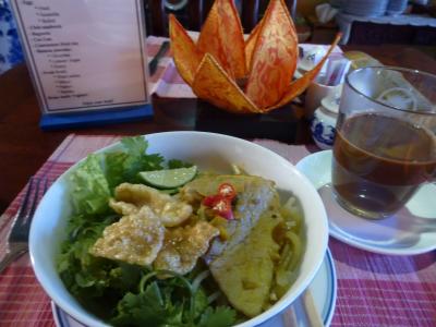 カオラウ、ここでは賛否両論ですが、程よい弾力のある麺で、たっぷりの香草と相まって、私はかなり美味しく感じました。