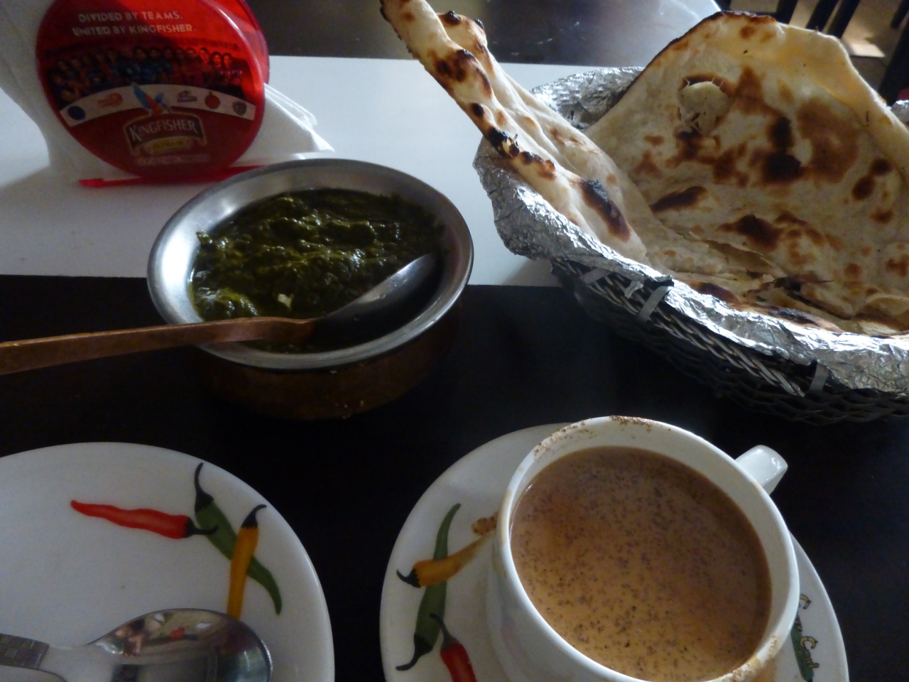 ほうれん草とチーズのカレーと、ナン、チャイをいただきましたが、どれも美味しかったですよ。
