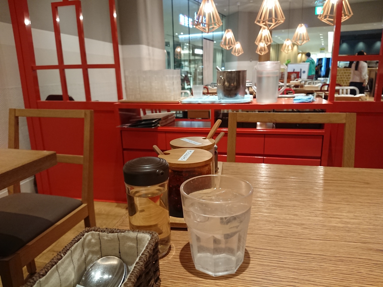 グランフロント大阪の、うめきた広場地下にあるレストランの類は、だいたい、ドアや壁などの無い、半分オープンスペースのようなところが多いのですが、このお店もそうです。