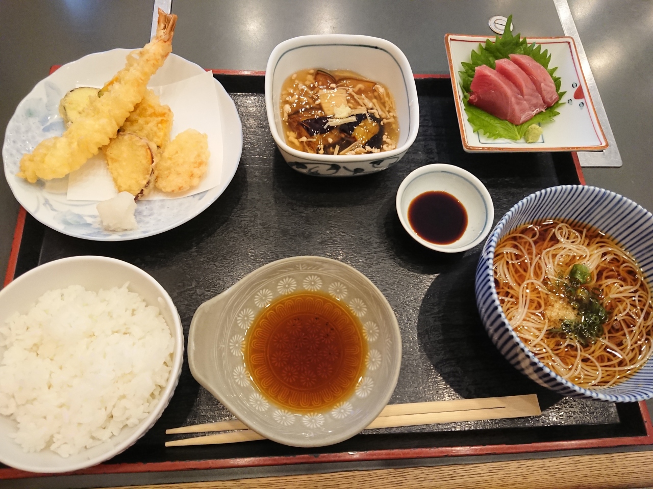 ランチは、きちんと感がありつつもリーズナブル、天ぷらがサクサクで美味しかったですし、お席がゆったりしているので、落ち着いていました。