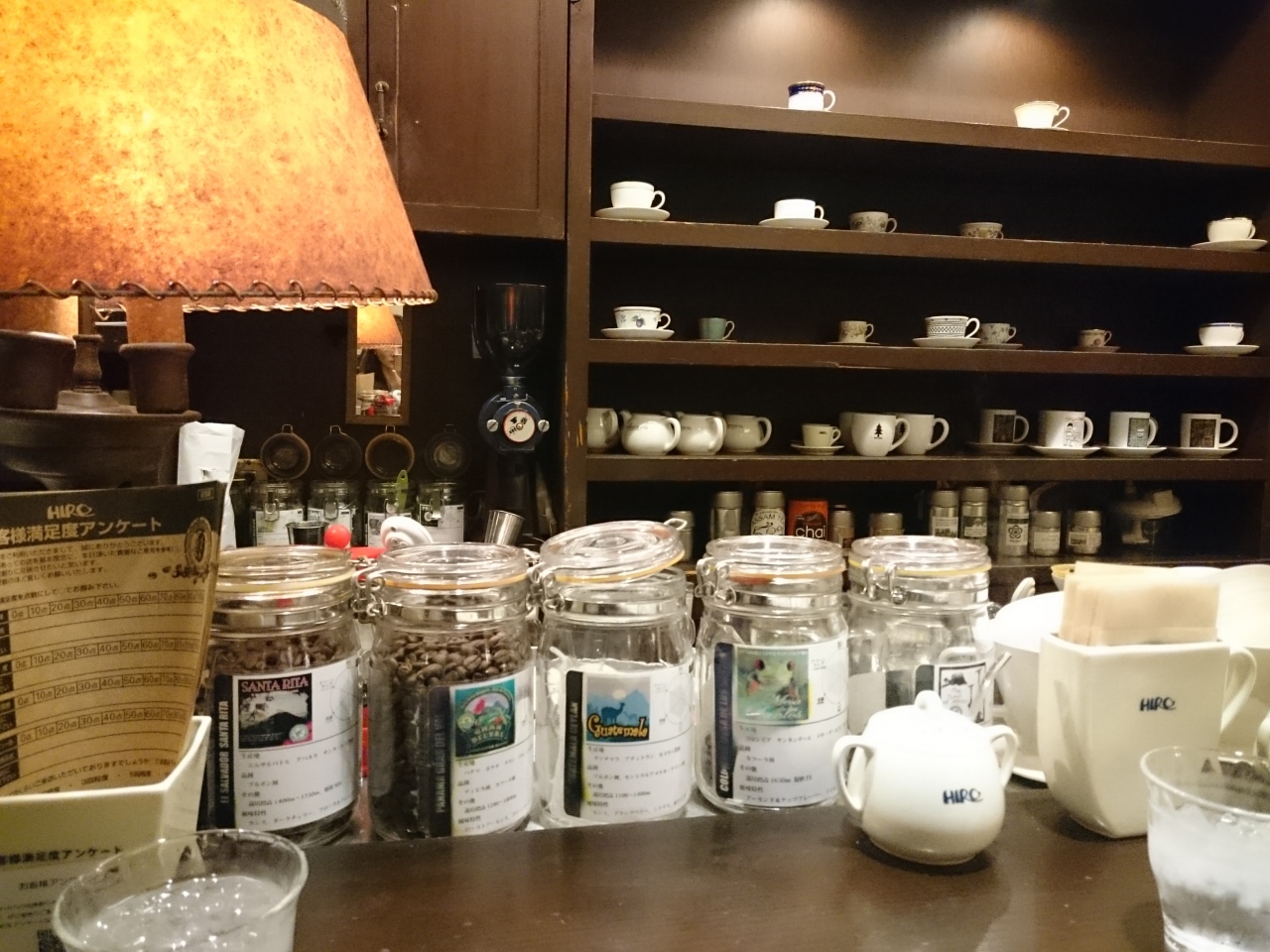 同じヒロコーヒーでも、大丸梅田店のように明るく開けた感じではなく、江坂店よりもこってりめのレトロ度合。