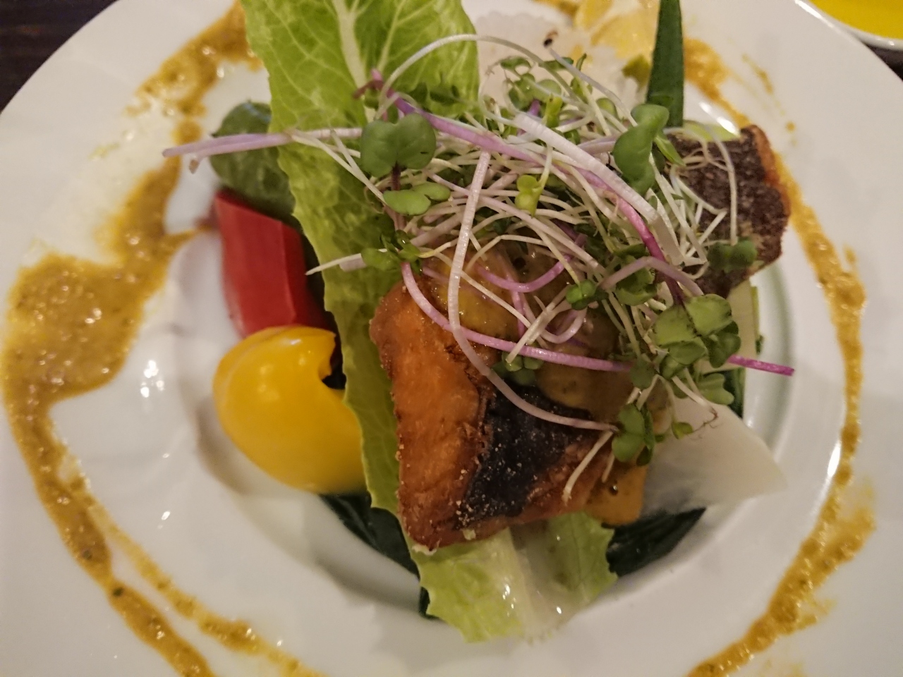 私が選んだメインのお魚は、身がぷりぷりで、お味も良かったです。