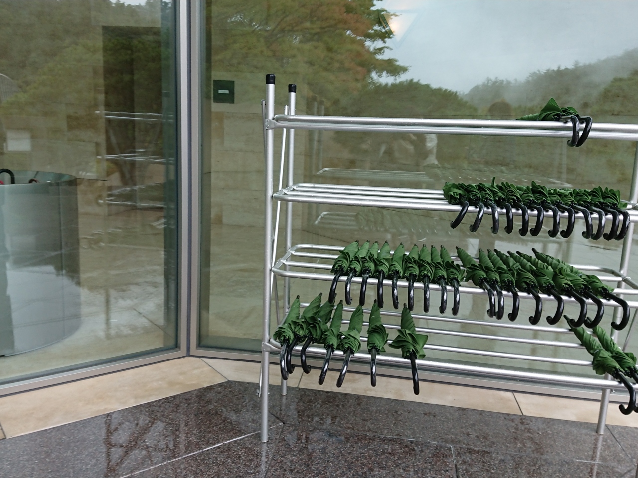 来館者が利用できる傘の色も計算されていて、ニクイ、ニクイ。