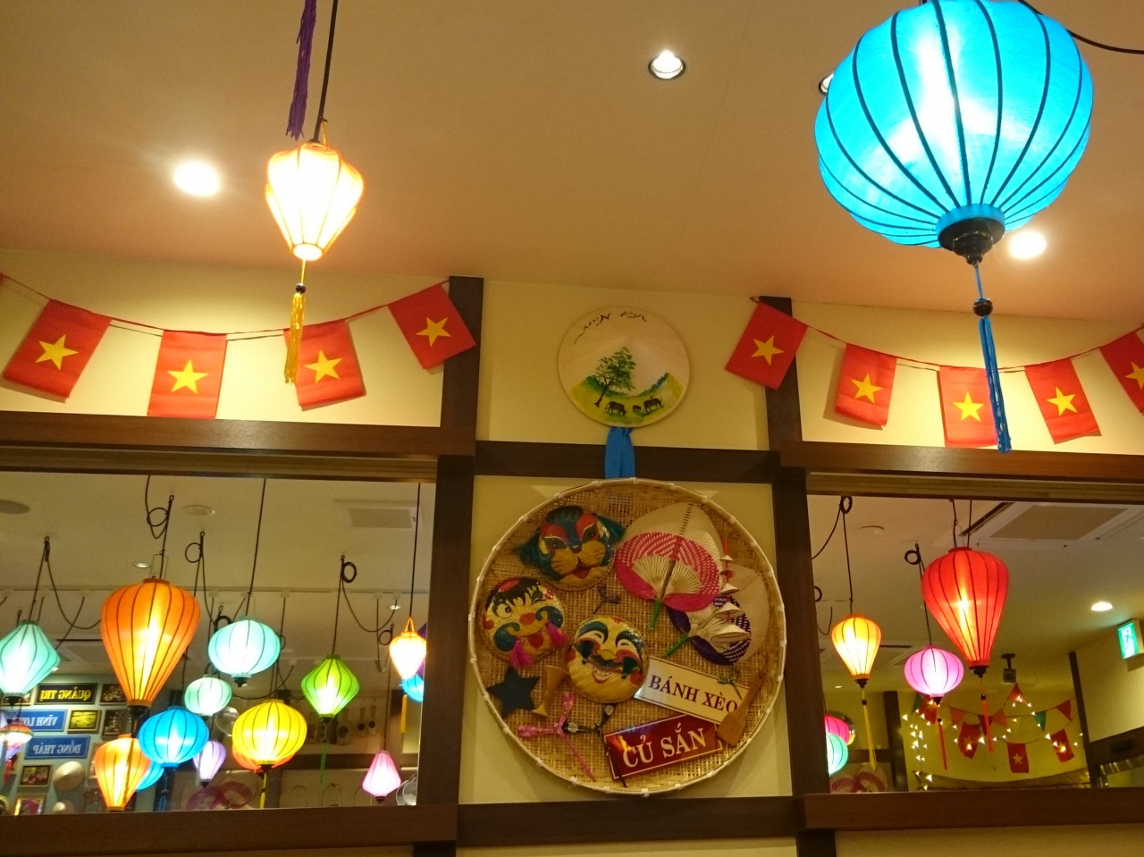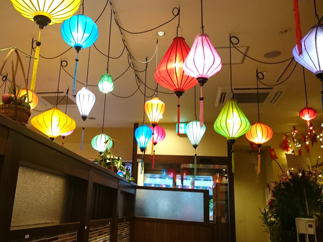 いろとりどりの提灯が、ベトナムのホイアンさながらの店内は、わくわくする感じがあります。