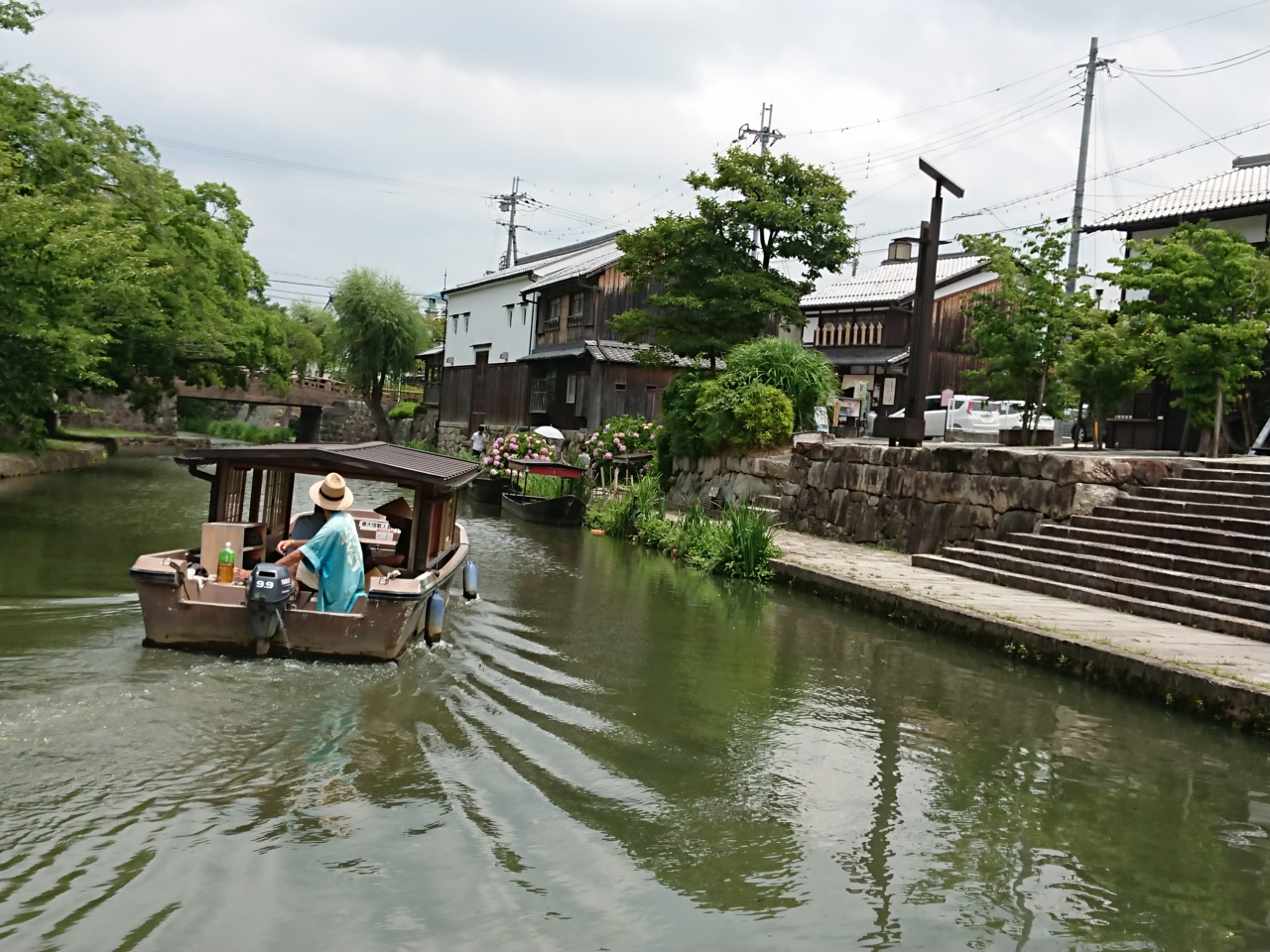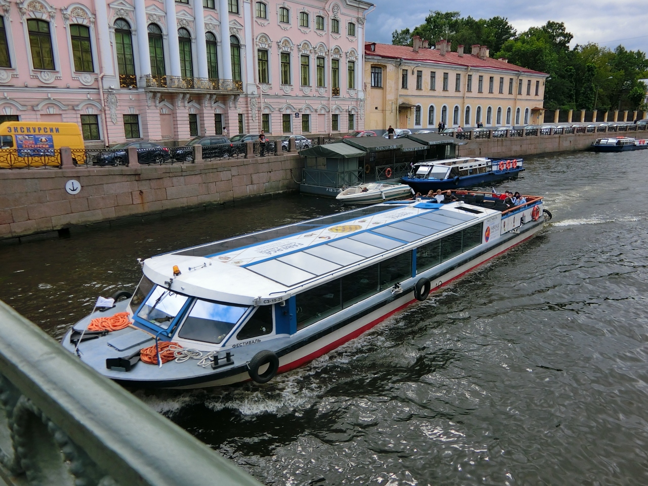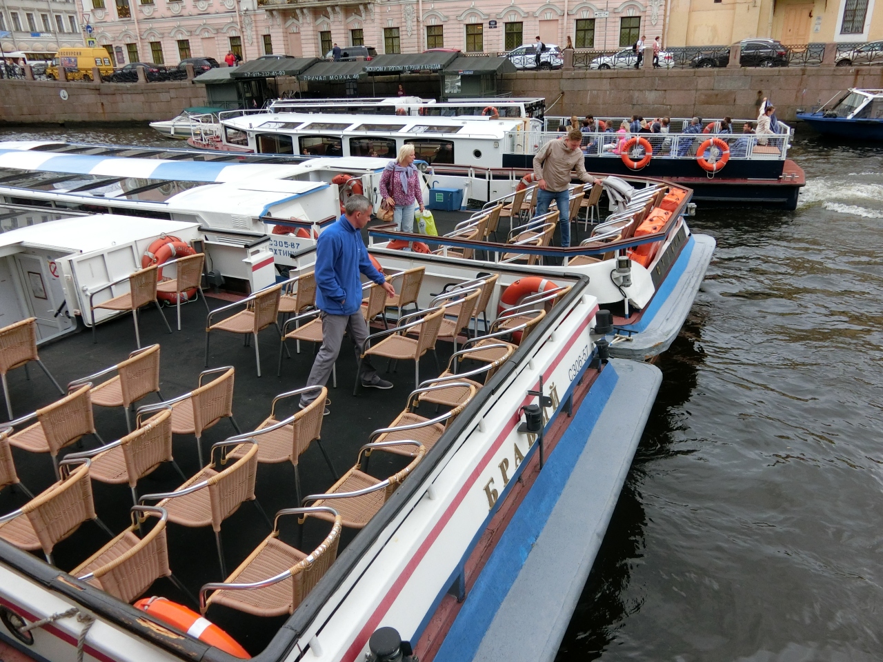 橋の上にサンドイッチマンのようなスタイルの勧誘員が何人か立っていて、道行く人を誘っていました。私も誘われ、あそこだよ、と指さされた場所に船が。
