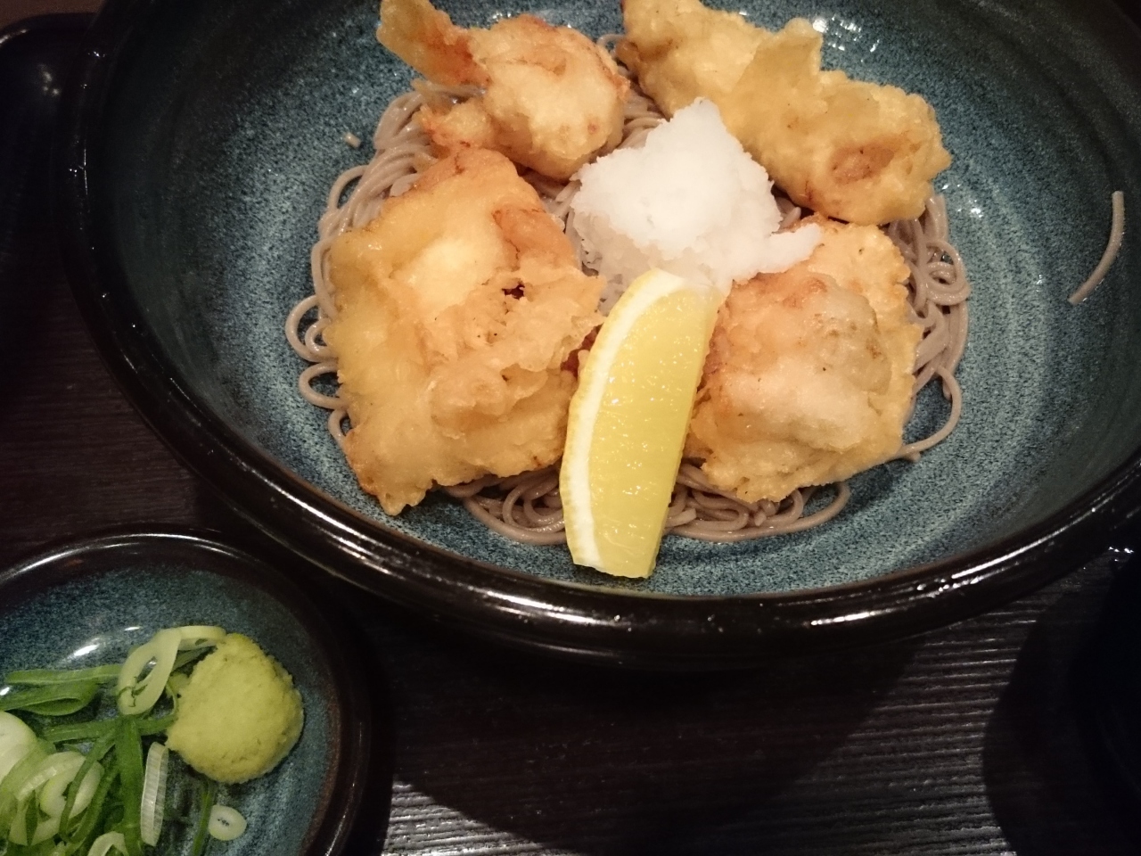 冷やし鶏天おろし蕎麦をいただきました。以前、ここのちくわ天うどんを、1玉でも1.5玉でも料金は同じと言われ、ついつい1.5玉にして、後悔したことがあります。