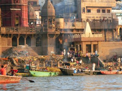 火葬が行われることで有名なガートです。トラブルの書き込みをあちらこちらでたくさん見たので、面倒になって、ボートからの見学にしました。