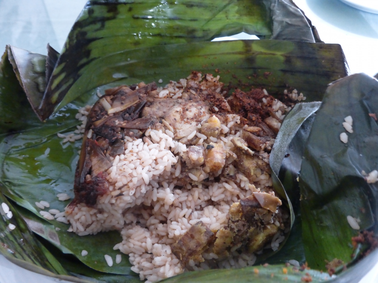 ベアフットでショッピングしてから、歩いて行きました。ランチビュッフェもあったようですが、「ランプライス」が食べたかったので、アラカルトで注文しました。ランプライスというのは、バナナの葉で包んで蒸されたお弁当のようなものです。包みを開けるのがまず楽しく、お味も良かったですよ。