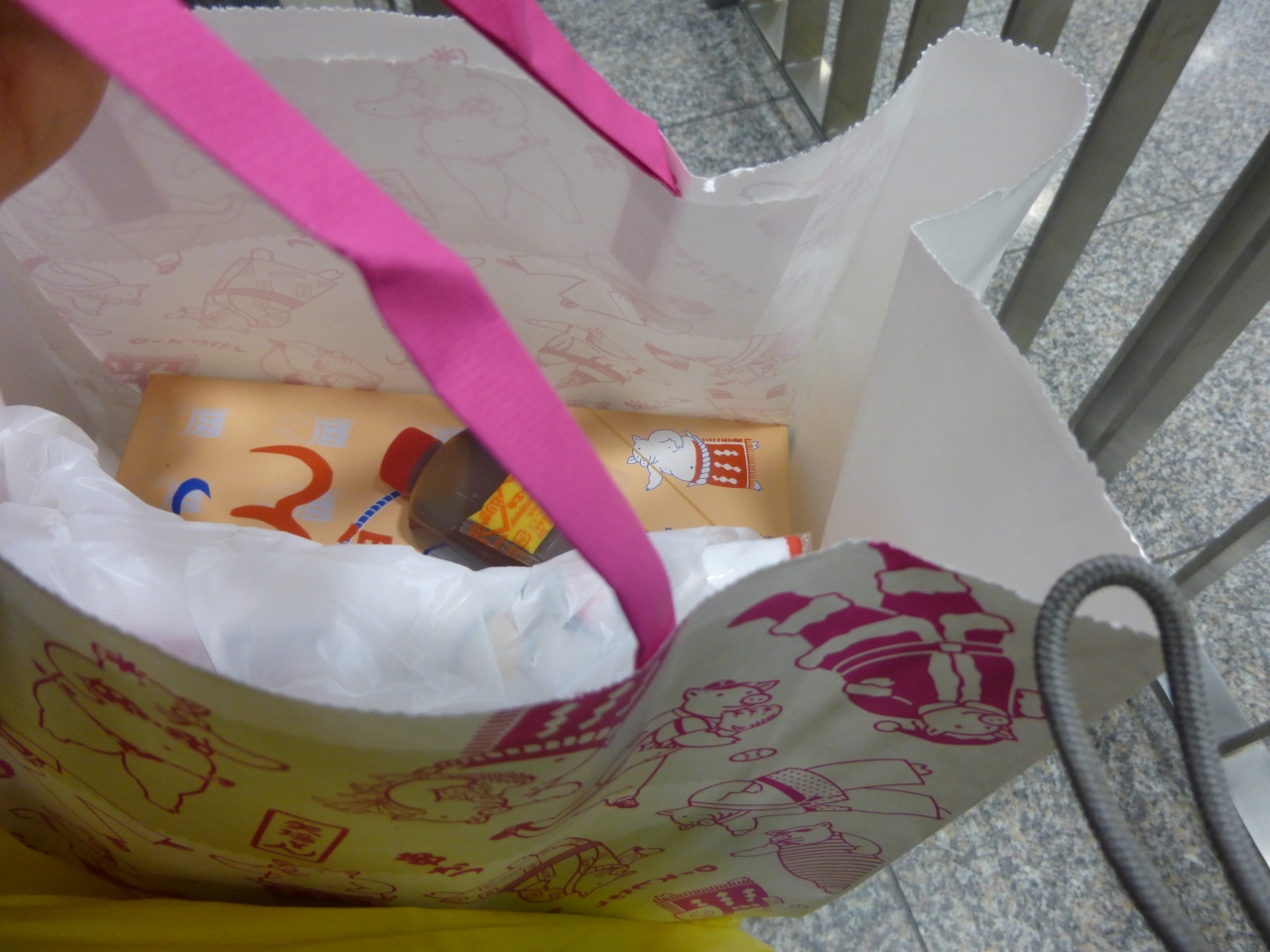 可愛い紙袋に入れてもらえて、ちょっと得した気分。ハンドタオルなどの豚さんグッズも売られていました。
