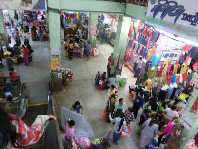 地下へは行っていませんが、わりと若者向けなお店が多いように思いました。私は民族衣装のロンジーを買いたかったのですが、売っているお店はありながら、ミシンが無く、サイズ直しなどはしてもらえないので、結局何も買いませんでした。そういうものはゼージョーマーケットの方が良いようです。エアコンが入っていて涼しいですし、今のミャンマーの洋服などを見るならこちらも楽しいかもしれません。